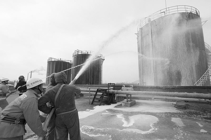 800立方米丙烯腈儲(chǔ)罐突發(fā)“泄漏”,一旦發(fā)生環(huán)境污染事故,將波及周邊大片生活區(qū),情況十分危急……昨天上午9時(shí)許,市環(huán)保局主辦的環(huán)境突發(fā)事件應(yīng)急演練在安徽天潤(rùn)化學(xué)工業(yè)股份有限公司儲(chǔ)罐區(qū)舉行?!翱?!有人中毒倒地,罐體隨時(shí)有起火可能,請(qǐng)搶險(xiǎn)救援小組、醫(yī)療救護(hù)小組、消防滅火小組支援!”伴隨著急促而有序的通話,企業(yè)負(fù)責(zé)人命令立即啟動(dòng)專項(xiàng)環(huán)境應(yīng)急預(yù)案。“事故”現(xiàn)場(chǎng),兩名穿戴防護(hù)服、身背呼吸機(jī)的救援隊(duì)員沖鋒在前,成功關(guān)閉了發(fā)生泄漏的3號(hào)罐的外排閥門,并對(duì)損壞罐體進(jìn)行搶修,防止更多化學(xué)氣體外泄;現(xiàn)場(chǎng)醫(yī)療人員抬起擔(dān)架沖進(jìn)儲(chǔ)罐區(qū),抬送“傷員”到安全地帶,組織員工向上風(fēng)口有序撤離轉(zhuǎn)移;全副武裝的消防隊(duì)員手持水槍,噴涌而出的泡沫將3號(hào)罐體團(tuán)團(tuán)包裹,罐內(nèi)化學(xué)物質(zhì)得到降溫、稀釋。