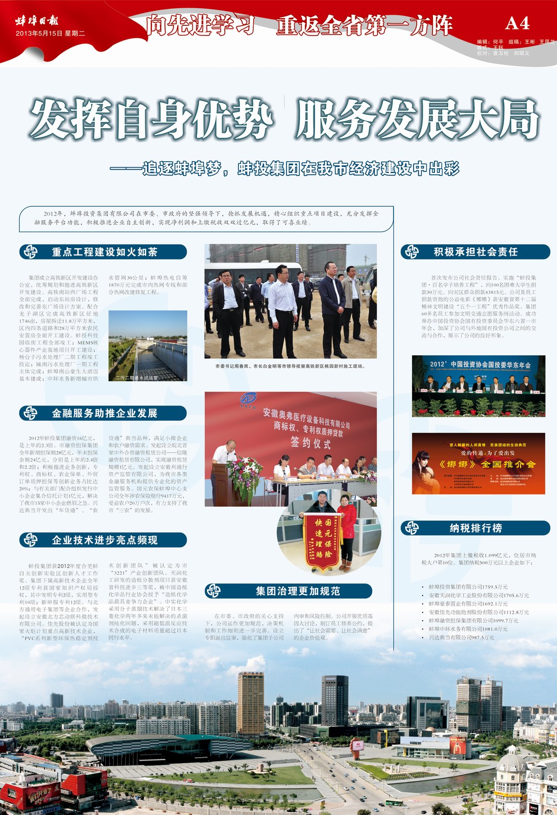 蚌投集團(tuán)在我市經(jīng)濟(jì)建設(shè)中出彩—蚌埠日?qǐng)?bào)先進(jìn)專(zhuān)版