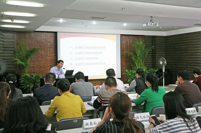 廖老師根據(jù)自身多年從事人事檔案工作的經(jīng)驗與思考,結(jié)合客觀的理論和實際案例,闡述了企業(yè)職工檔案管理的意義、作用及特點,詳細介紹了職工檔案材料歸檔收集范圍的十九項內(nèi)容,以及檔案分類、排序、編目、技術(shù)加工、裝訂和驗收入庫等具體操作步驟和要求。培訓結(jié)束,大家針對自己工作中遇到的具體問題進行了提問和討論。